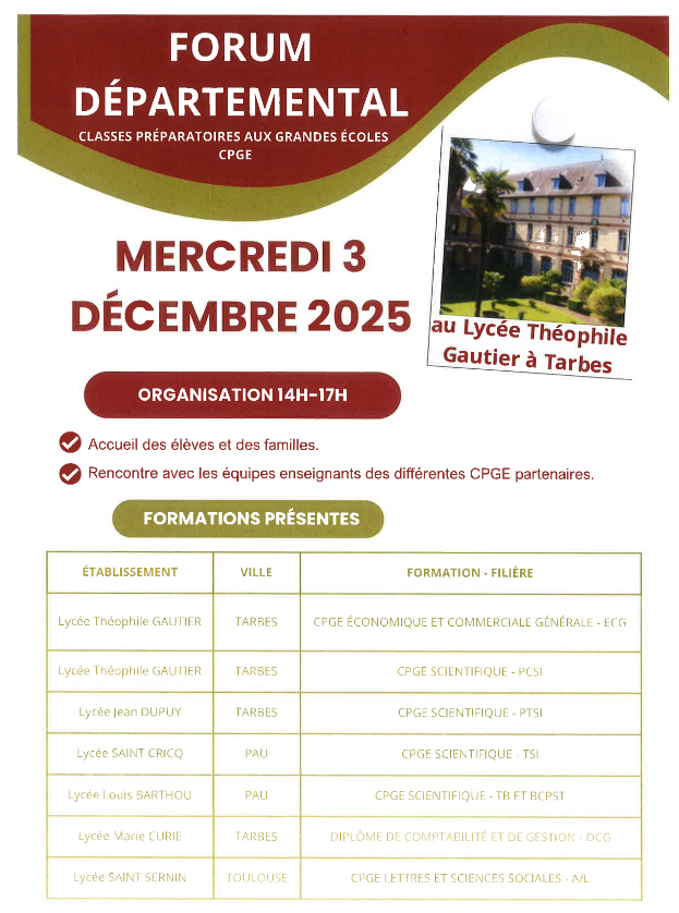 MERCREDI 3 DÉCEMBRE 14H-17H au LYCÉE THÉOPHILE GAUTIER